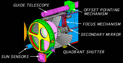 The TRACE telescope has an aperture of 30 cm, and observes an 8.5 x 8.5 arcminute field of view (about 10% of the solar disk) in a single pointing with a resolution of one arcsecond. Full-Sun mosaics can be made by stepping the field of view across the disk. Coatings on four quadrants on the primary and secondary normal-incidence mirrors allow observations in narrow spectral bands tuned to the Fe IX (9*ionzied Iron, 171 Angstroms), Fe XII (12*ionized Iron, 195 Angstroms), and Fe XV (15 *ionzided Iron, 284 Angstroms) lines in the EUV band, while filters allow observations in C IV, Lyman alpha, and in the Ultraviolet (UV) continuum using the UV mirror quadrant. The EUV bands are sensitive to coronal temperatures of about 1 to 2 million Kelvin, while the UV filters respond primarily to the temperature regimes of the photosphere, chromosphere, and transition region. The Sun-synchronous orbit allows long intervals of uninterrupted viewing. Observations at different wavelengths can be made seconds apart. Pointing is internally stabilized to 0.1 arc second against spacecraft jitter.