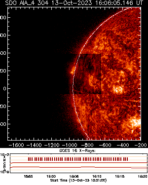 SSW_cutout_20231013T1555-20231013T1628_AIA_131-193-171_N10E89_ssw_cutout_20231013_155506_aia_304_N10E89